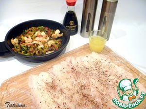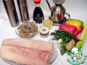 Ингредиенты для «Рулет из трески с креветками и овощами»: