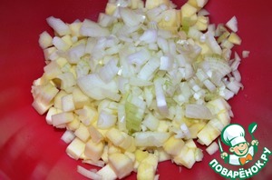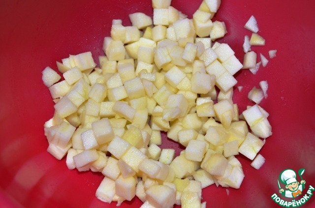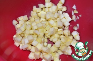 Свежее яблоко очистить от кожуры и семян. Нарезать небольшими кубиками.