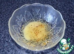 Масло смешать с уксусом и медом, посолить, поперчить по вкусу.