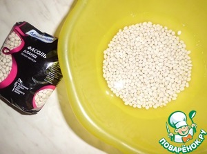 Берем фасоль "Бланш - белая мелкая" от "Мистраль". Она имеет нежный, сливочный вкус и прекрасно сочетается с тушеными овощами. Заливаем на ночь водой (столь длительного замачивания не требует, просто мне было удобно замочить на ночь).