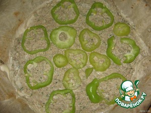 На неё перец нарезанный колечками.