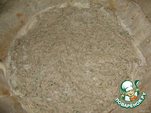 Выкладываем одну треть от начинки, распределив её по всей форме.
