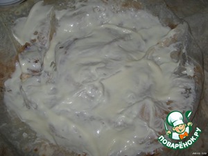 Смазываем майонезом.