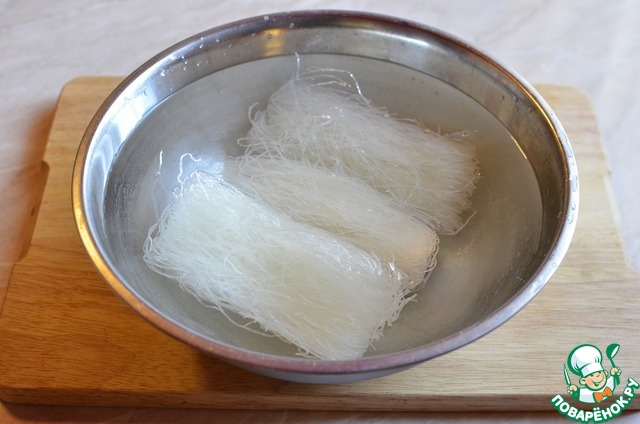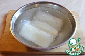 Положить фунчозу в прохладную воду на 30-40 минут.