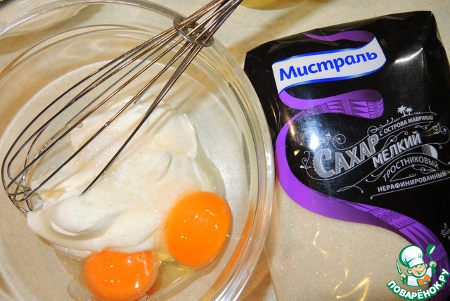 - Сахар тростниковый (мелкий от "Мистраль", в тесто) — 1 ст. л.