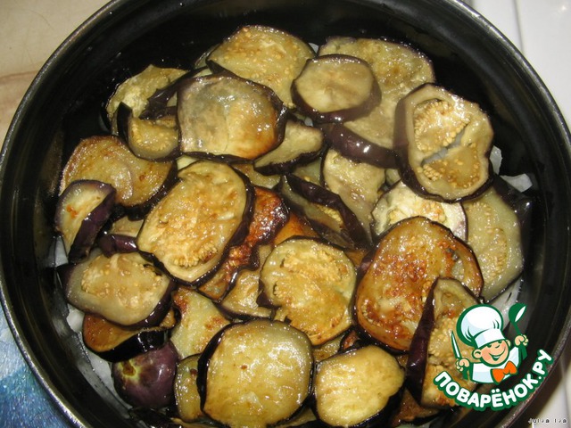 Оставшиеся баклажаны. Каждый слой солим и перчим по вкусу.