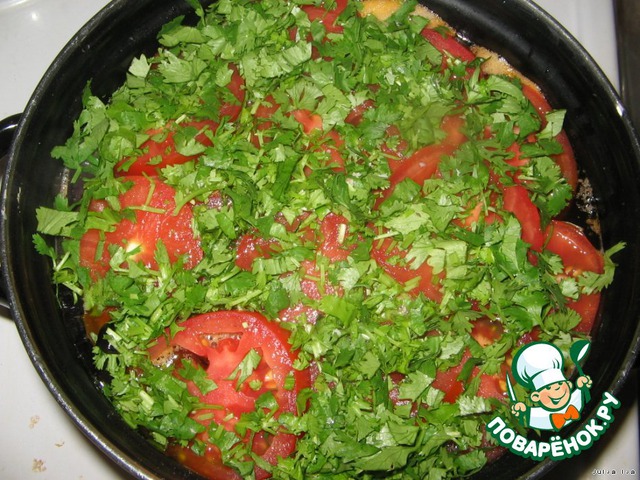 Посыпаем зеленью. У меня была кинза и петрушка.