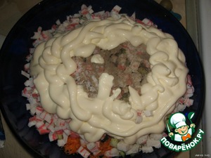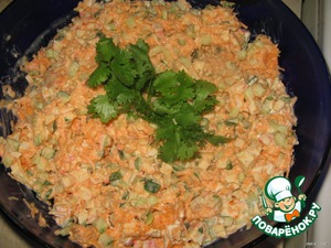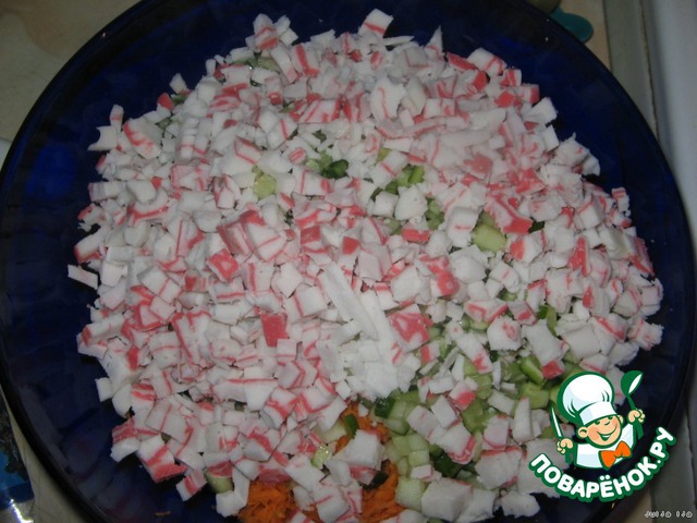Изначально этот рецепт был с раковыми шейками. Но я его модернизировала и получился салатик на каждый день. На праздник можно побаловать себя и шейками.