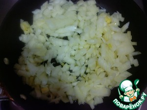 Обжариваем лук на оливковом масле минут 10 до золотистости