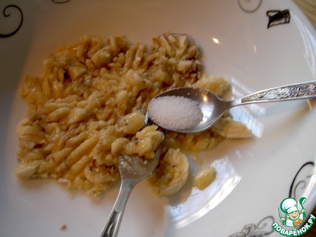 Банан нужно просто размять вилкой, не добиваясь пастообразного состояния, это ни к чему