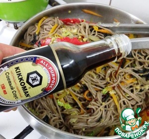 Перед подачей лапшу сбрызнуть оставшимся соевым соусом