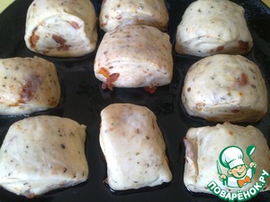 Сверните тесто в рулет, разрежьте на куски шириной 3 сантиметра.