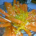 Кунжут поджарим в течение 2-х минут (или до золотистого цвета) на сухой сковороде. Подмешаем кунжут к моркови. Блюдо готово!
