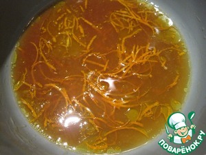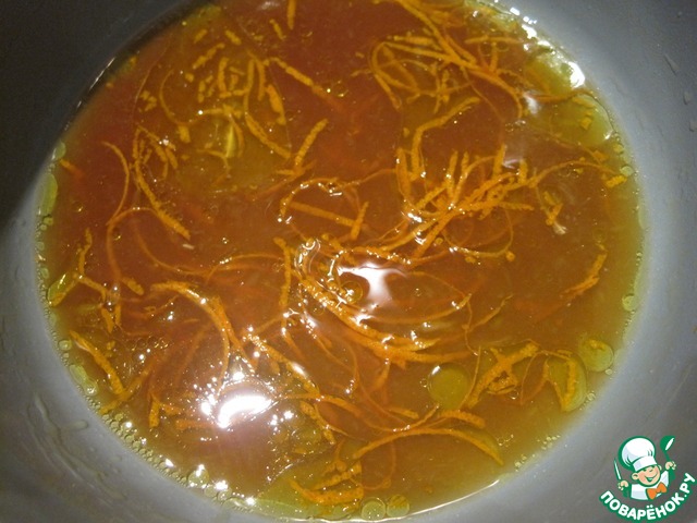 В сотейнике смешаем сок и цедру апельсина, соевый соус, оливковое масло. Доведём смесь до кипения.