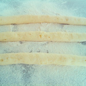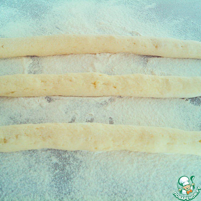 Разделить тесто на тонкие полоски / ширина - 1 см. /.
