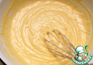После этого добавить муку, постоянно перемешивая тесто. Должна получиться консистенция густого крема.