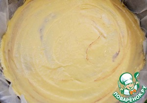 Далее выливаем тесто в форму (моя 28 см в диаметре), чередуя белое и шоколадное тесто. При этом, шоколадного наливать немного меньше, чем белого.