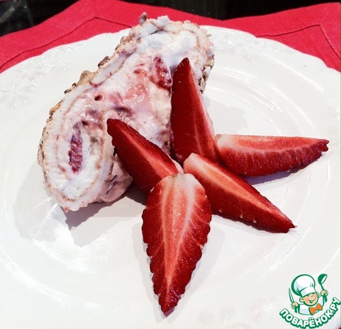 Рецепт «Рулет безе с клубнично-карамельным кремом»: