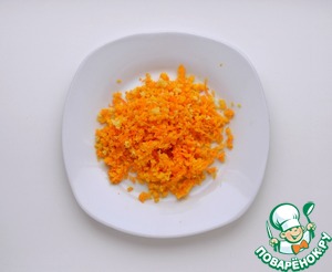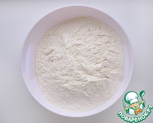 В миску просеять муку, добавить разрыхлитель и цедру, перемешать.