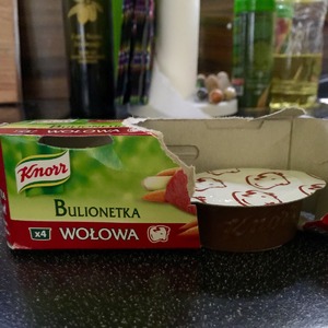 Теперь что касается бульона: если мне нужно его немного и в таких ситуациях, то я беру именно такой! Специально загуглила: в России они называются "душа обеда". Просто растворяю в кипятке это желе! Можете кидать в меня тапками, что химия, но это самая лучшая химия из тех, что я встречала)) Растворяем примерно в 350 мл кипятка.
