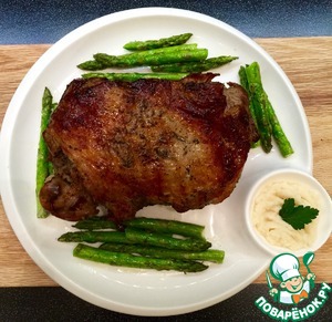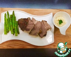 Я подавала просто со спаржей и хреном. Но, как Вы понимаете, тут может быть абсолютно любой, Ваш любимый гарнир!