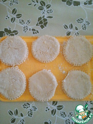 Раскатываем тесто в пласт, толщиной 5-6 мм. и вырезаем формочкой наши коржики.