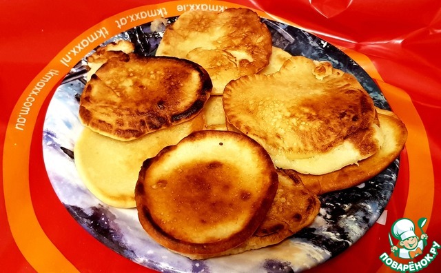 Сегодня на завтрак, думала сварить детям кашу, а молоко скисло. И я решила приготовить им оладьи. На мое удивление, они получились еще вкуснее, чем на кефире.