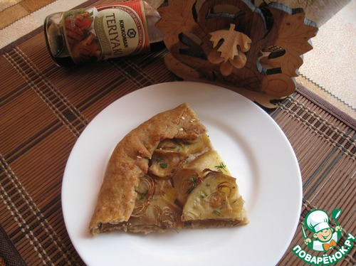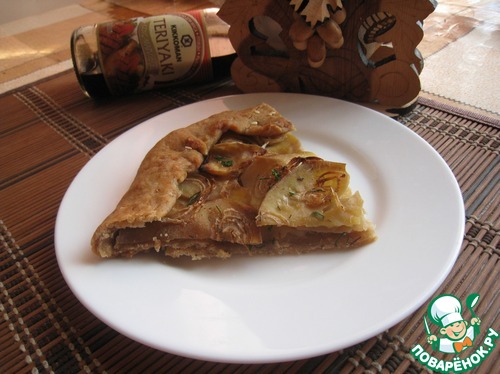 Заворачиваем края галеты, ставим пирог в духовку, выпекаем при температуре 200 градусов 30-40 минут (смотрите по вашей духовке). Я на первые 30 минут накрывала фольгой.