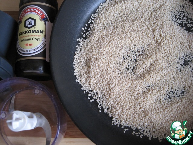 Для тхины (она же тахинная или кунжутная паста): на сухой сковороде подсушим и СЛЕГКА позолотим кунжут, постоянно помешивая.