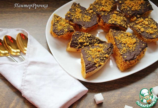 Бедная Золушка, я думаю, ей часто приходилось готовить блюда практически из ничего, но в тоже время чтобы они были вкусными! Этот рецепт как раз относится к разряду таких! Представляю Вашему вниманию очень аппетитные, карамельные пористые конфеты (в моей интерпретации они больше похожи на пирожные)! Отличаются своей необычной, пористой структурой. Когда откусываешь кусочек, они поражают своей хрусткостью, а потом просто тают во рту. На сайте есть похожие рецепты, но мой отличается технологией приготовления. А еще Вы найдете бонус в виде некоторых секретов и истории появления этого лакомства!