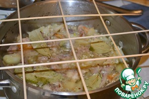 Кастрюлю желательно ставить на противень, а не на решетку, так как бульон может вытекать.