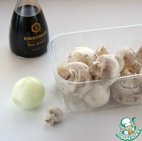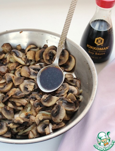 В конце добавить соевый соус Киккоман, который хорошо гармонирует с грибами.