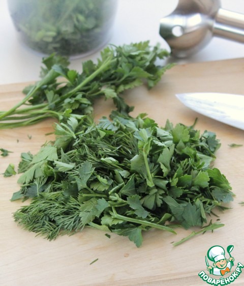 - Зелень (большой пучок из укропа, петрушки, кинзы) — 1 пуч.