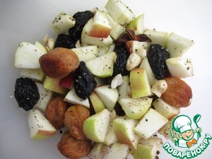 Но самый любимый такой: 1 яблоко, 5-6 черносливин, 5-6 урючин (не кураги!), 1 звездочка бадьяна, 6 коробочек кардамона, пригорошня кешью и смесь 5 перцев.