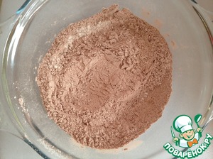 В миску просеиваем муку, какао и соду, добавляем туда соль.