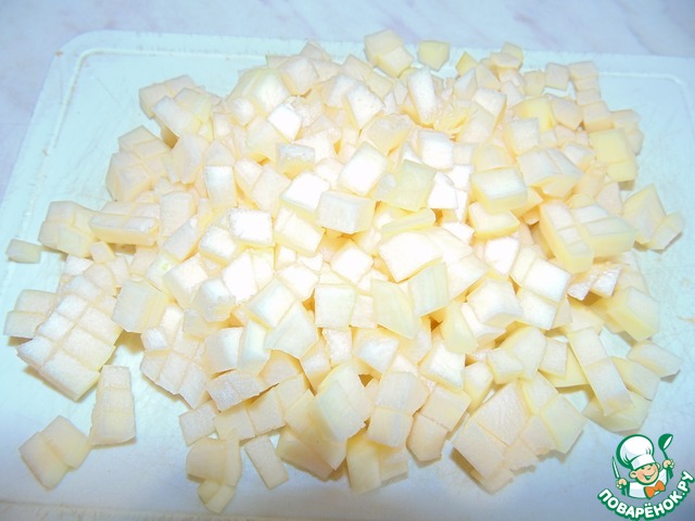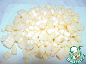 Тыкву нарезать кубиком примерно 0,5 см.