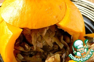 Порезанную тыкву выложить в сковородку к овощам.