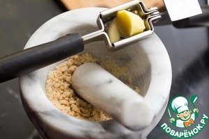 Добавляем чеснок и имбирь, выдавленные через пресс.