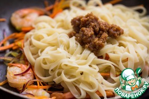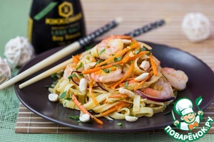 Рецепт «Лапша с креветками, овощами и арахисовым соусом»: