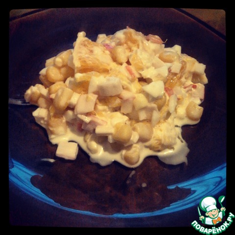 Попробовала этот салат у подруги. Она поделилась рецептом. Очень необычное сочетание продуктов. Но салат вкусный, для любителей экспериментов.