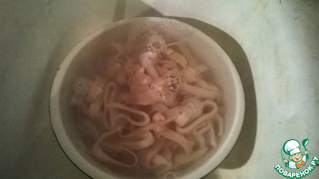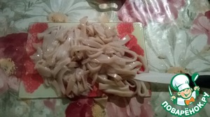 Перед вами филе кальмара. Порежьте его соломкой.
