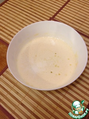 Яйца, сахар 5 ст. л., ванильный сахар взбиваем миксером на маленькой скорости до полного растворения сахара.