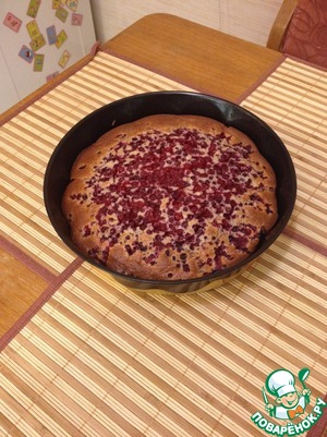 Аккуратно достаем форму из духовки, выливаем тесто в форму, равномерно распределяем бруснику, затапливая слегка в тесто. Ставим в духовку на 30-40 минут на 180 градусов среднее положение, верхний и нижний нагрев. Первые минут 25 духовку лучше не открывать. Готовность теста проверять зубочисткой.