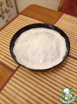 Пока пирог остывает, сделаем самую обыкновенную заливку. Сметану смешиваем с оставшимися 5 ст. л. сахара (вы можете регулировать сладость по своему вкусу)