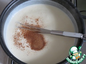 Снять с огня, добавить мускатный орех и перемешать.