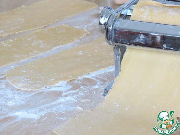 - Тесто пресное (тесто для лазаньи https://www.povarenok.ru/recipes/show/103725/) — 400 г