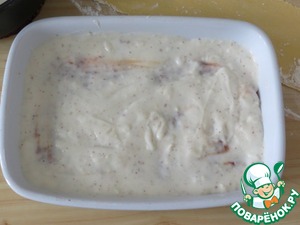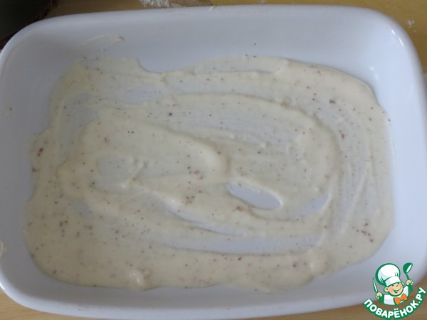 В форму для выпечки положить 3 большие ложки соуса бешамель.