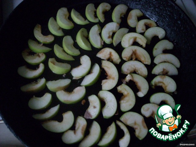 Дно формы выложить выложить дольками яблок. -