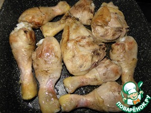 Курицу разделить на куски, посолить, поперчить и обжарить
