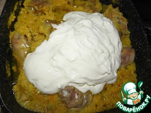 Добавить йогурт и сметану, проверить на специи и потушить еще минут 10